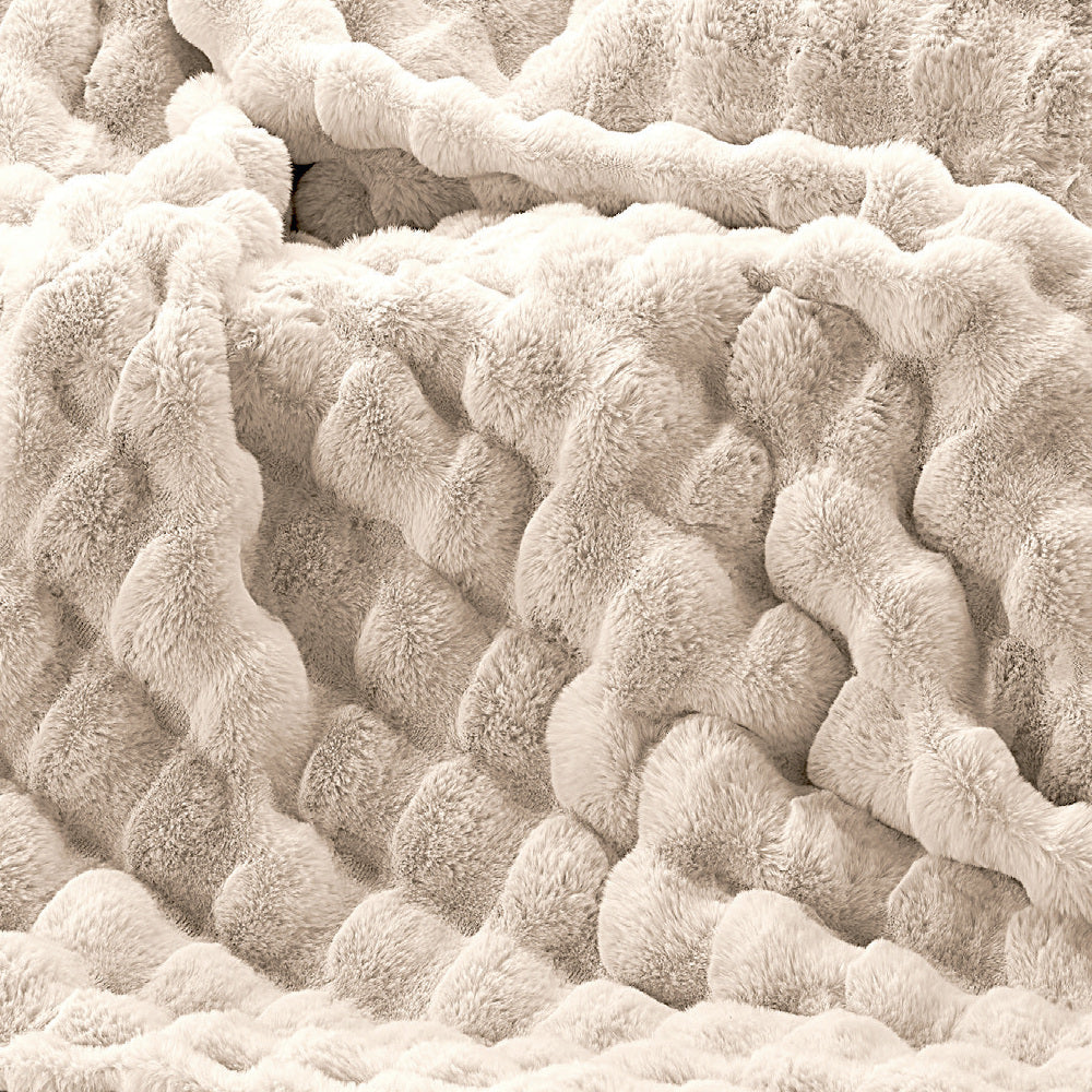Esprimi il tuo gusto di lusso con il Plaid Pelliccia GFFERRARI - Kira. Questo plaid è realizzato in ecopelliccia jacquard con effetto goffrato e fodera in velluto. L'articolo KIRA, variante AVORIO, offre un peso di 800 gr/m2 per una sensazione di calore e morbidezza. Perfetto per un tocco elegante nella tua casa.