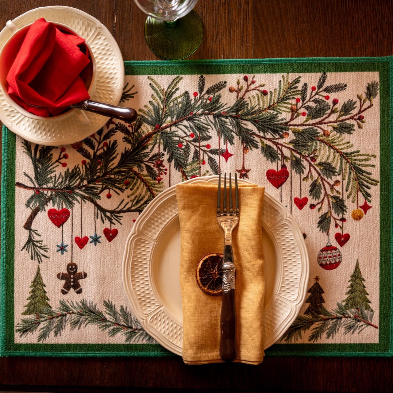 Perfetta per chi ama una mise en place audace e raffinata, questa tovaglietta americana natalizia trasforma ogni pasto in un momento di stile.