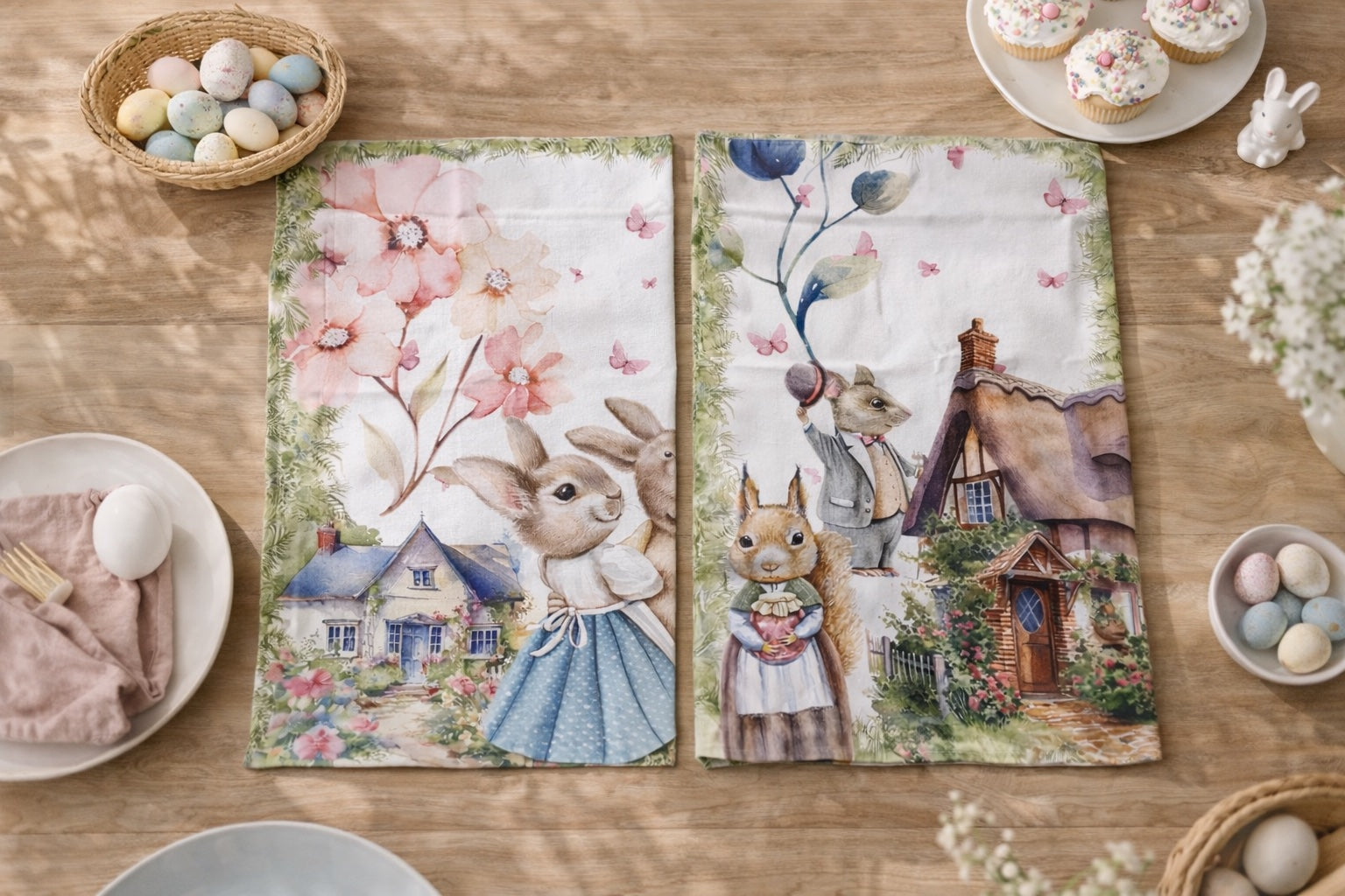 Porta in cucina tutta la dolcezza della primavera con lo strofinaccio pasquale Miller, realizzato in 100% cotone e impreziosito da una raffinata stampa digitale ad alta definizione. Le delicate illustrazioni in stile acquerello raffigurano teneri animali del bosco e scene primaverili: coniglietti, scoiattoli, fiori e piccole casette immerse nella natura, perfette per creare un’atmosfera calda e festosa durante il periodo di Pasqua.