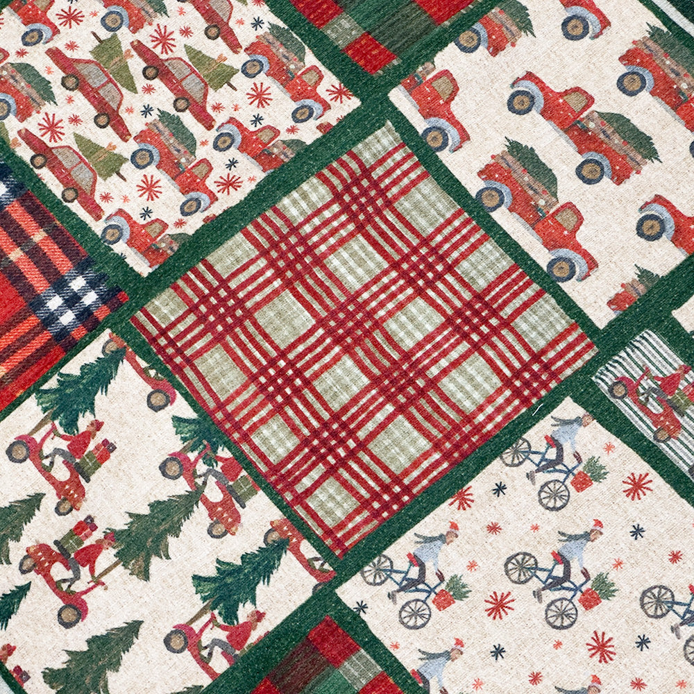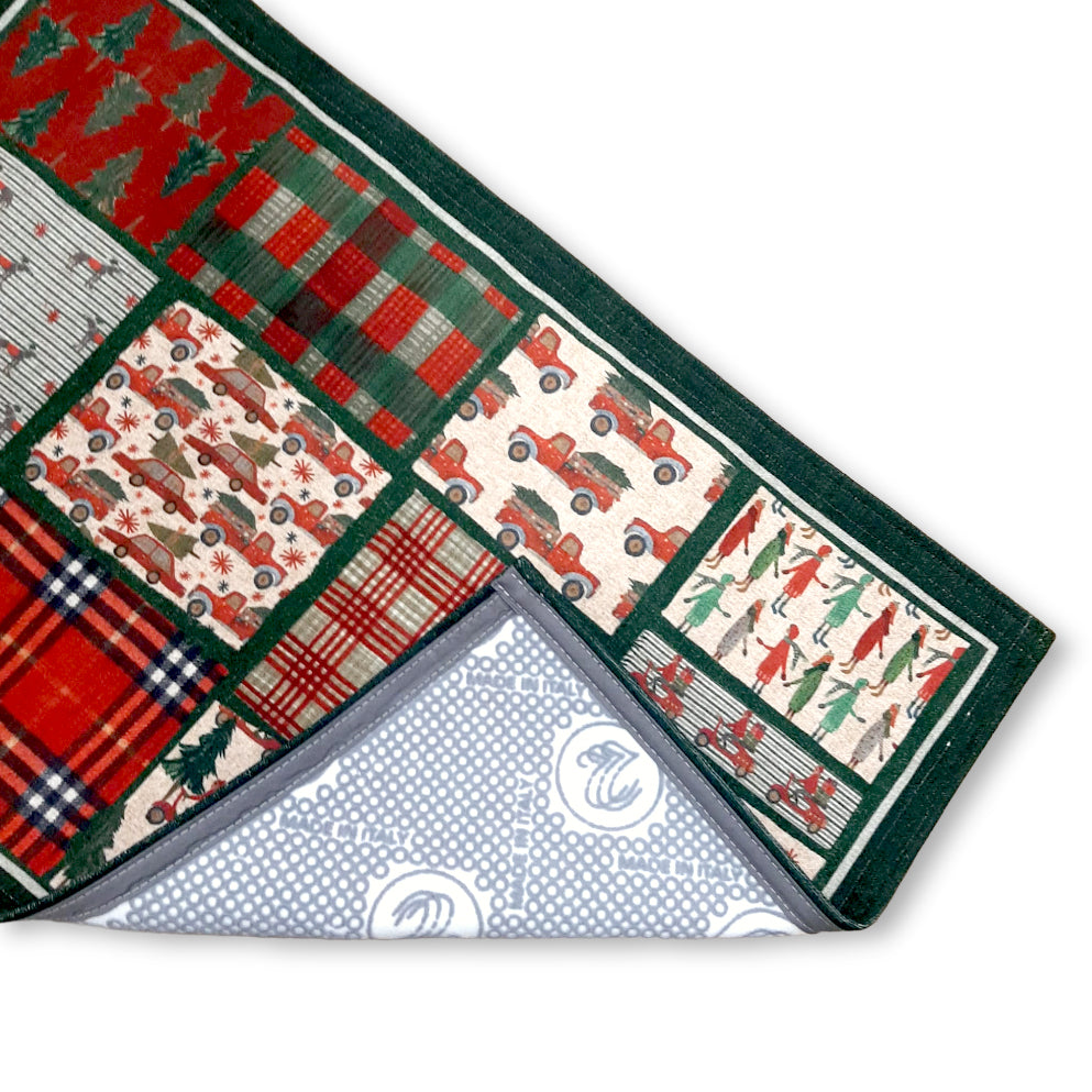 Elegante e Festoso Tappeto Arredo Anti-Scivolo in materiale riciclato e stampa digitale. Con la sua fine e tradizionale stampa patchwork con tema Natalizio arreda qualsiasi stanza della casa, puoi utilizzarlo in cucina, camera, ingresso e bagno. Pratico, comodo e duraturo, con fantasie originali e uniche. Prodotto da Artigiani Italiani Professionisti: Tessitura Toscana Telerie.