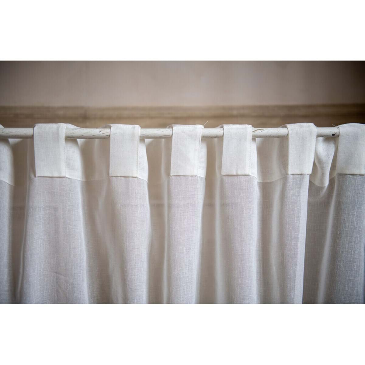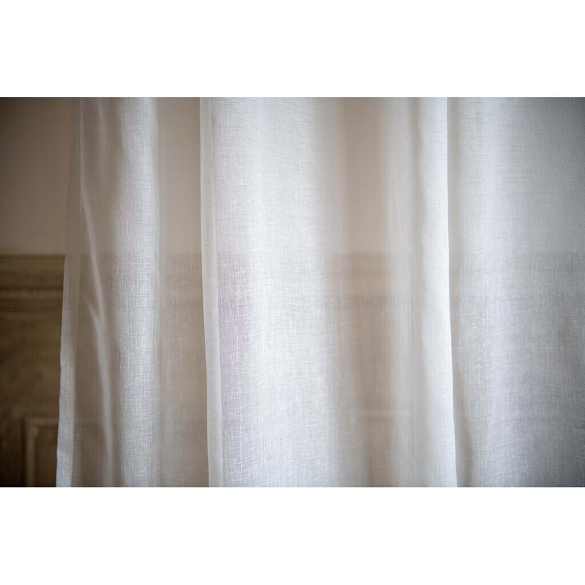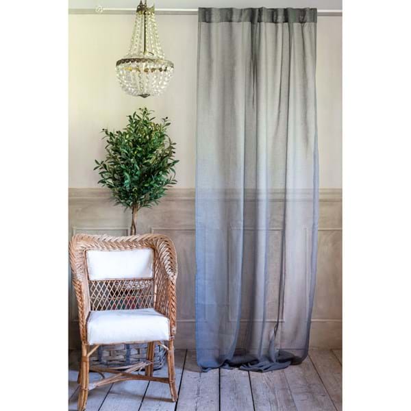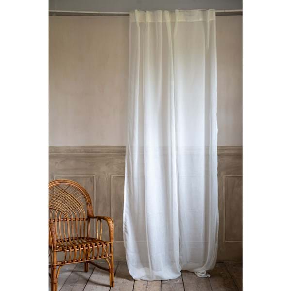 Elegante e versatile tenda tinta unita di Blanc Mariclò. Si appende attraverso passanti nascosti ed è ideale per essere utilizzata in qualsiasi ambiente, da sola o a completamento di tende più lavorate.