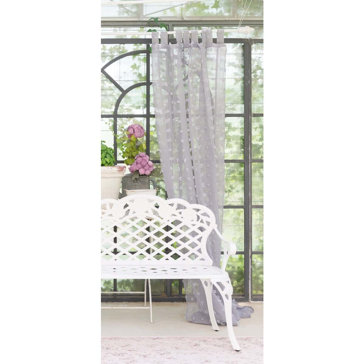 Tenda da parete in tulle con inserti simili a pon pon e passanti. Le tende della collezione Puffolina di Blanc Mariclò sono semplici ma particolari allo stesso tempo, grazie ai pon pon che percorrono tutta la tenda. I colori sono tenui e delicati. Tutti gli articoli per la casa Blanc Mariclò hanno uno stile romantico e shabby chic.
