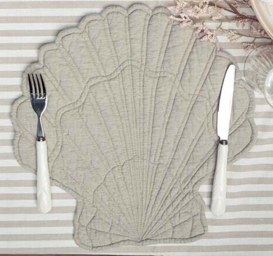 Tovaglietta americana boutis a forma di conchiglia con decorazioni trapuntate. Un tocco marino ed originale per la tavola.