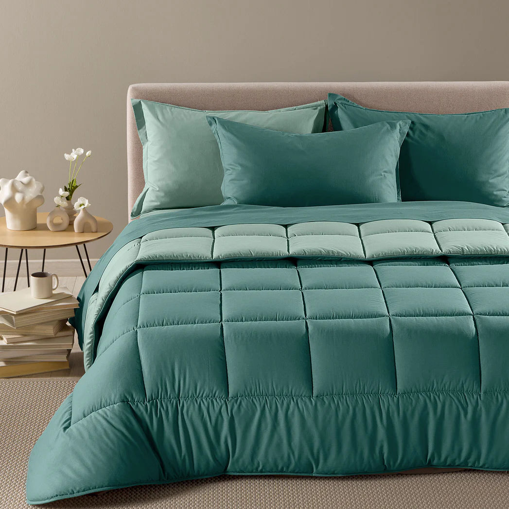 Il design double color in tinta unita permette di cambiare facilmente look alla tua camera da letto con un semplice gesto.