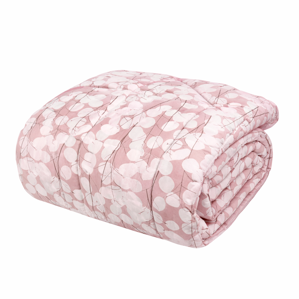 Eleganza retrò e comfort contemporaneo si incontrano nella trapunta invernale Lunaria Rosa.