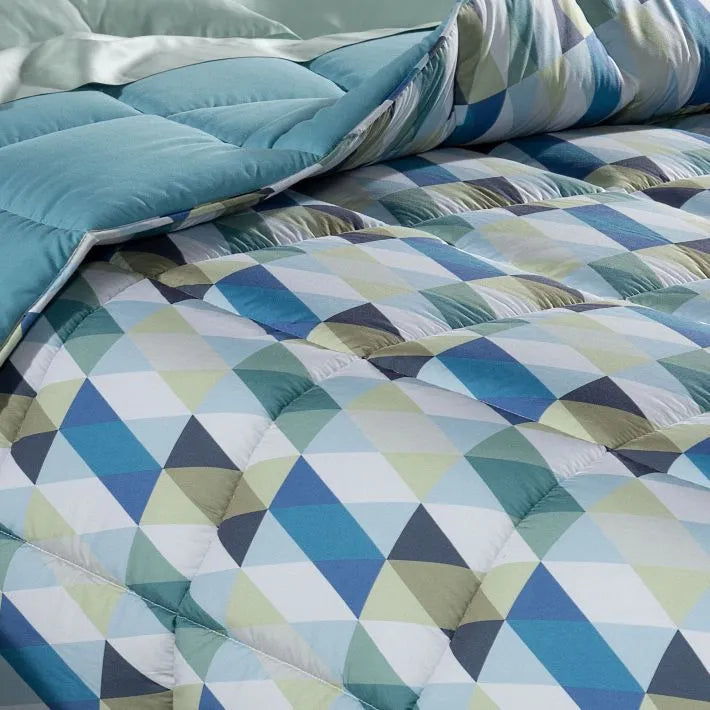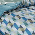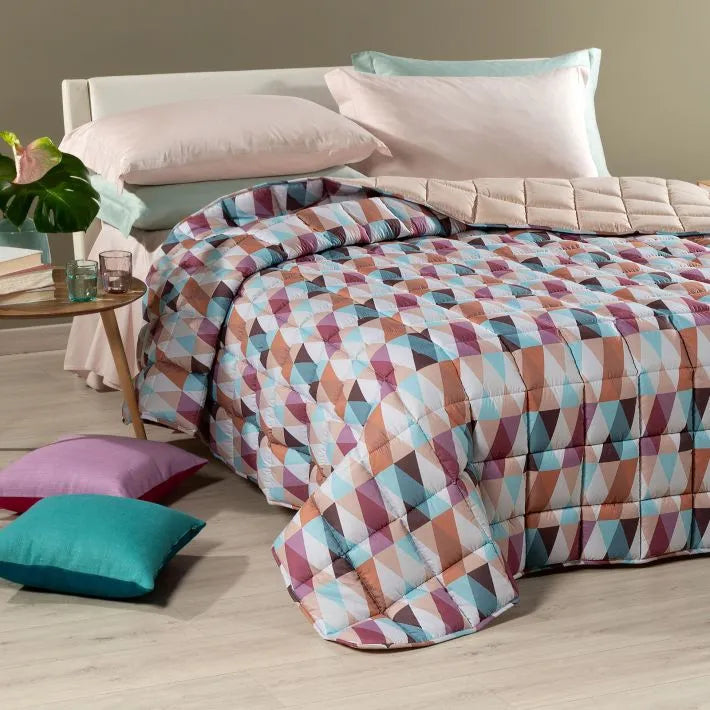 Calda trapunta invernale matrimoniale in microfibra e stampa geometrica. La trapunta è realizzata con imbottitura SOFY in fibra di poliestere anallergica di 300 gr/mq ed è particolarmente indicata per essere utilizzata durante le serate invernali. L'esterno della trapunta è realizzato con tessuto in microfibra morbidissimo e resistente ai lavaggi. I coloranti utilizzati sono ecologici, certificati e privi di sostanze nocive per la tua salute e quella dei tuoi figli.